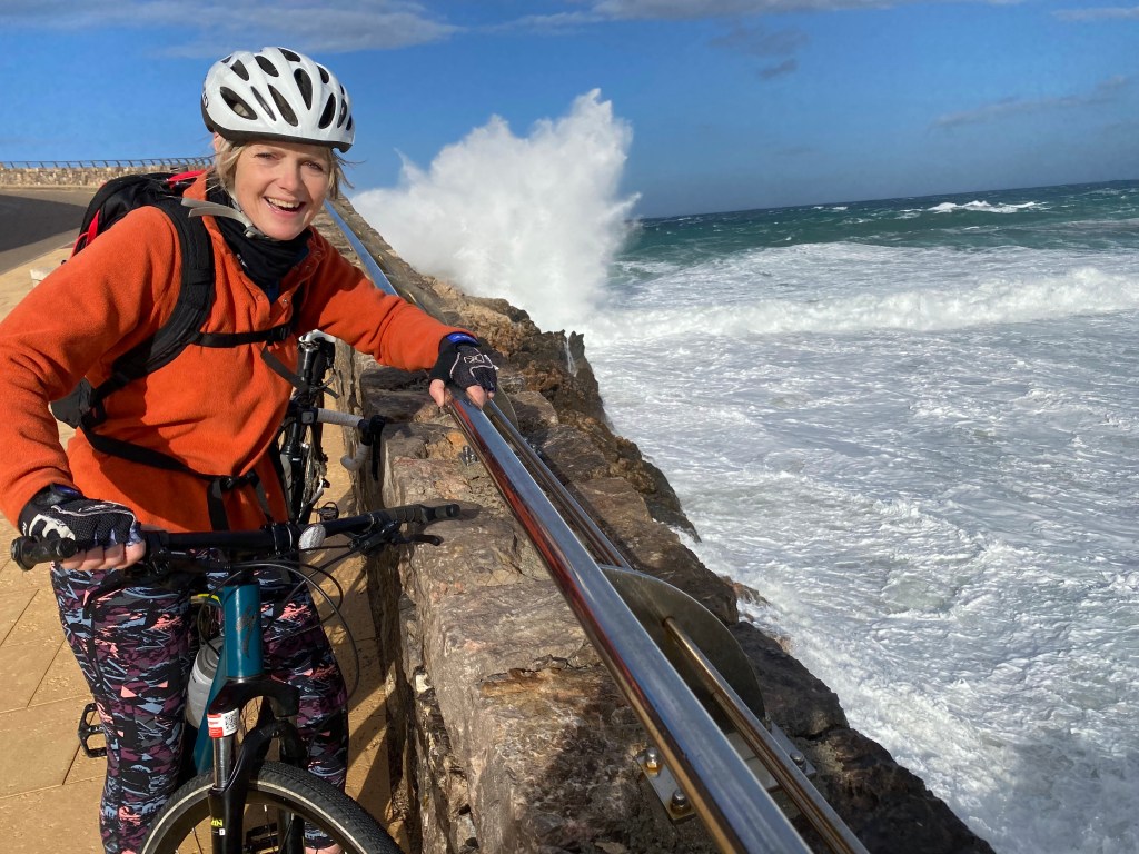 Sunday 12th January: Our first ride took us to the bay at Cala Sant Vincent. It was a ghost town with everything shut until the season started. The seas, which Sally referred to as “a bit choppy” were breaking over the road.