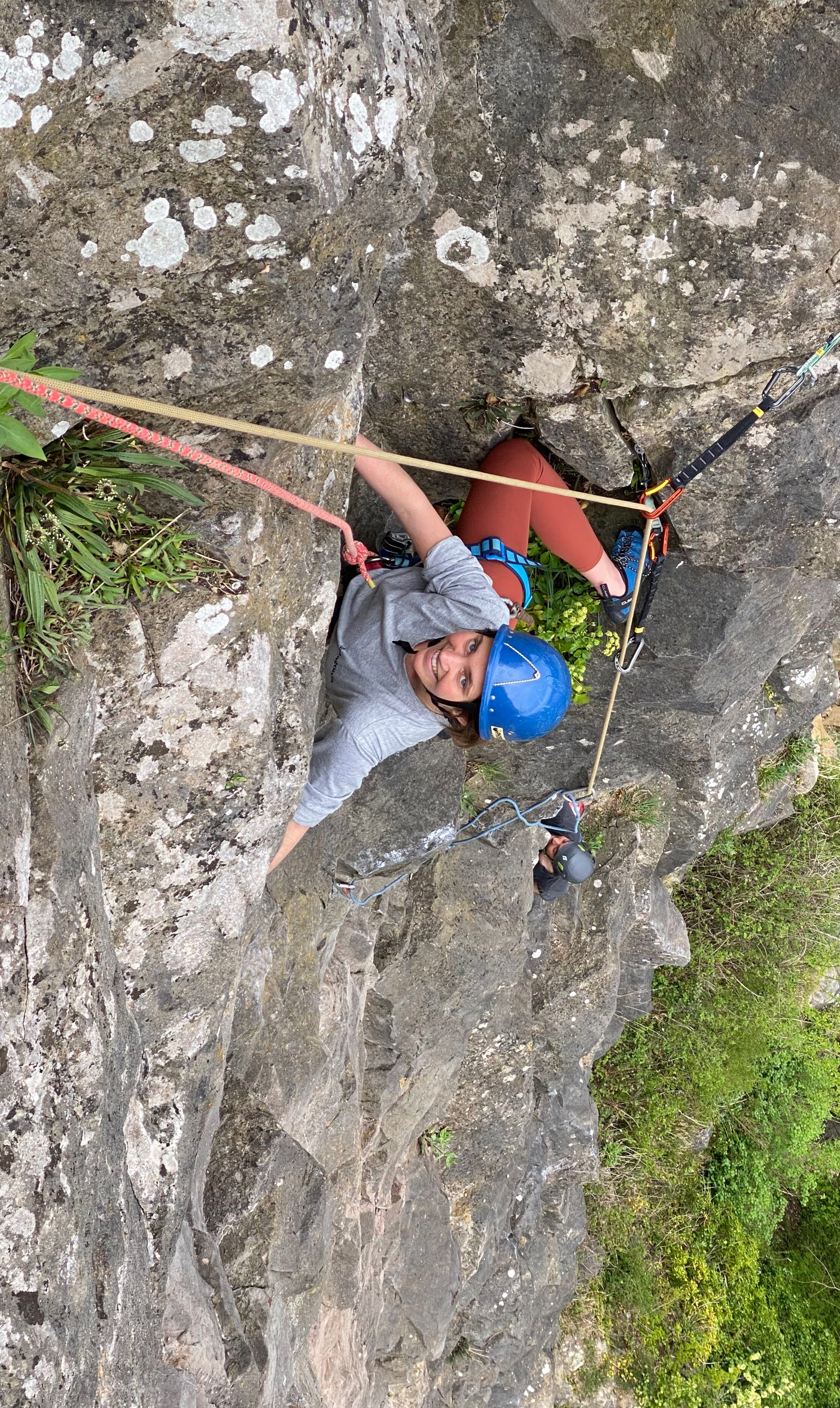 Belaying from the top I couldn’t see what Nicole was doing and just had to go by the feel of the rope. She was clearly giving it a lot of thought before committing to the move. When she arrived at the top she told me that in the end she gave herself a good talking to, “I’d just do this move if it was on a climbing wall!” and got on with it. Good effort. Scary move. Felt like a big adventure.
